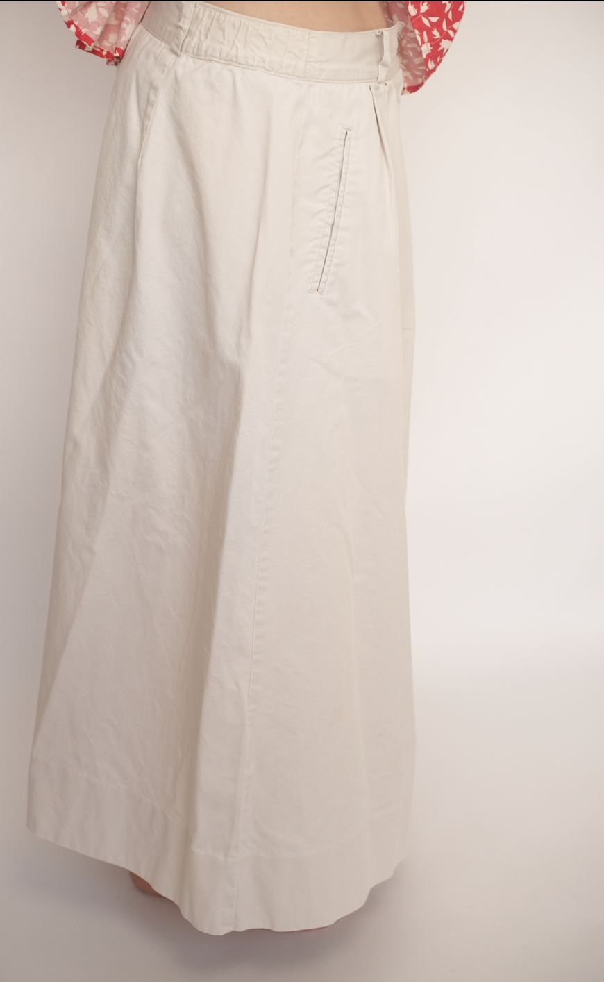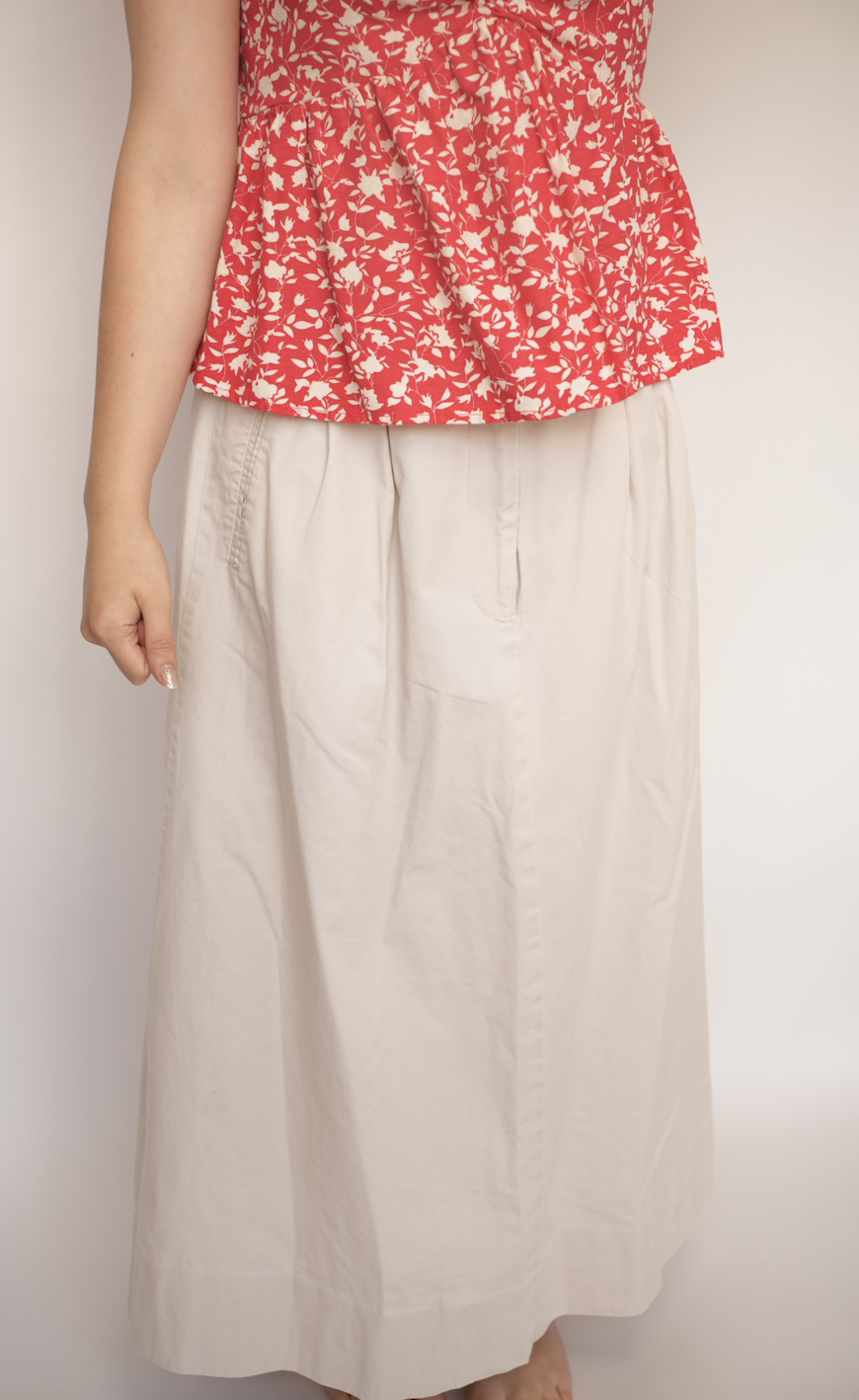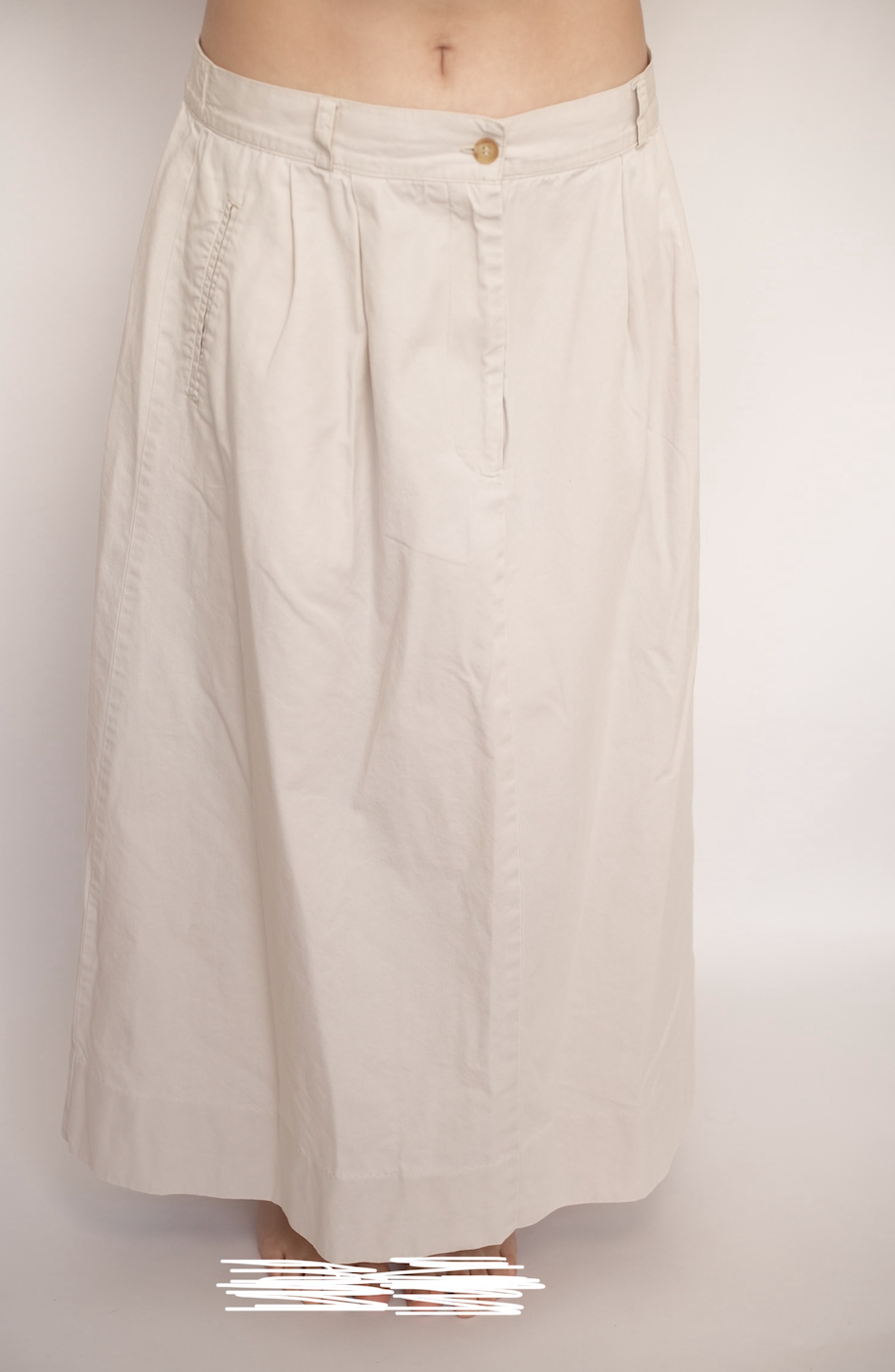 Falda midi en un tono crema súper combinable. Marca Talbots, talla 14, pero queda oversized en una talla M y perfecta en una talla L.