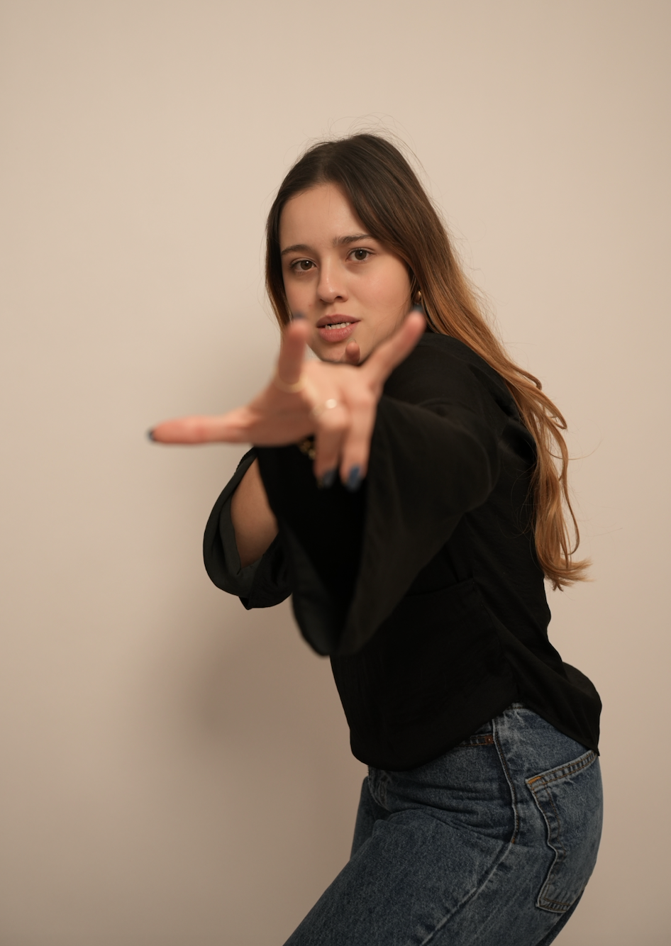 Blusa negra de Urban Outfitters, talla XS pero con fit oversized, lo que la hace ideal para diferentes tallas. Tela fluida y ligera con mangas amplias y caída elegante.